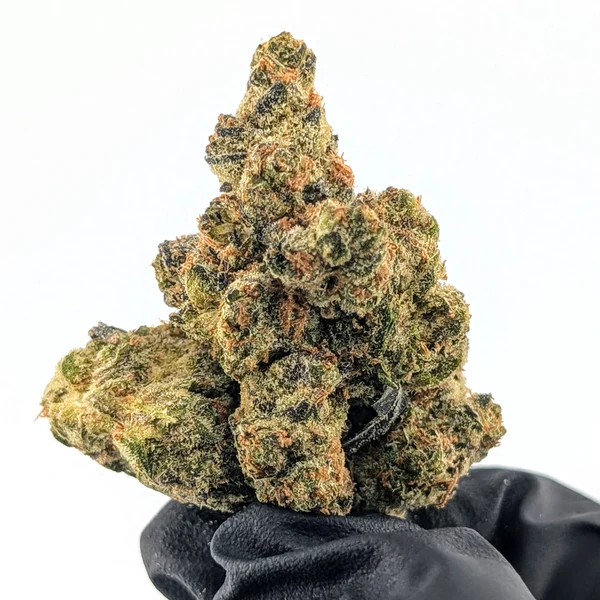 This flower pops with deep purples, lime green flashes, and a heavy frosting of trichomes. Bright orange pistils twist through every chunky nug, making it as loud visually as it is in flavor.