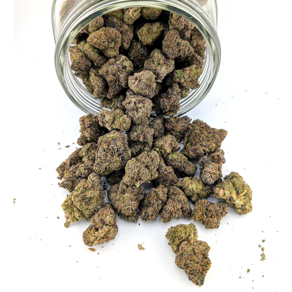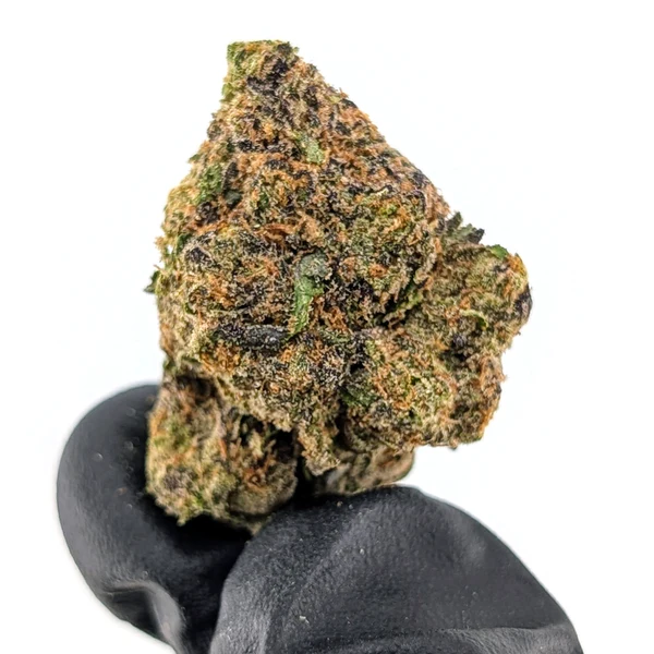 Chunky, resin-heavy buds gleam with a thick trichome coat. Expect bright greens accented by deep purples and bold orange pistils, giving it big visual appeal and true top-shelf character.