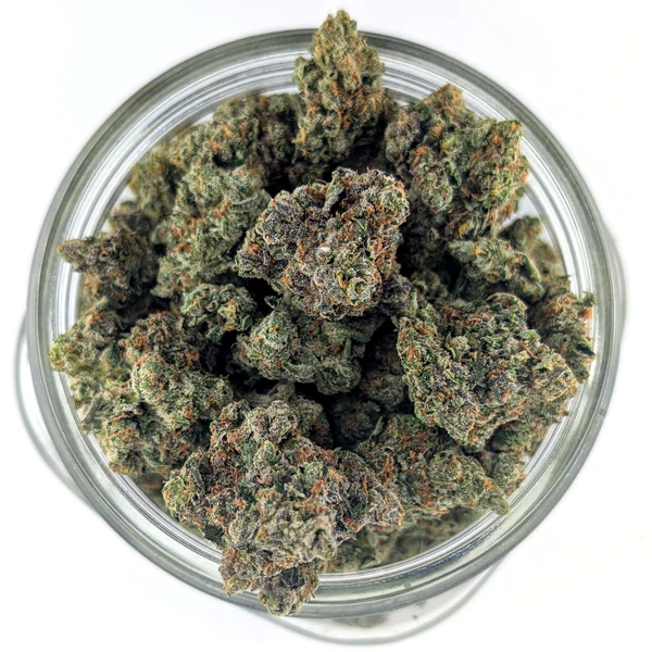 This flower is as beautiful as it is potent — deep greens and purples swirled with orange hairs and drenched in shimmering trichomes. Zoap’s visual appeal is top-tier and instantly recognizable.